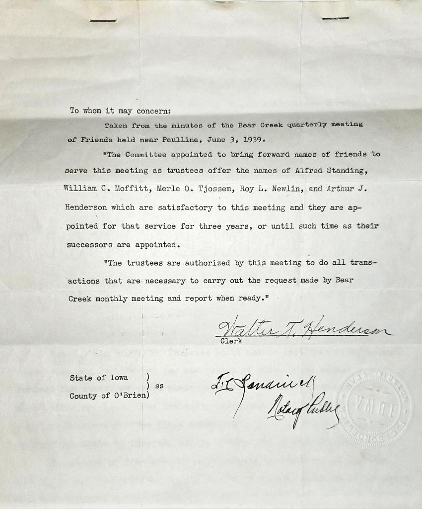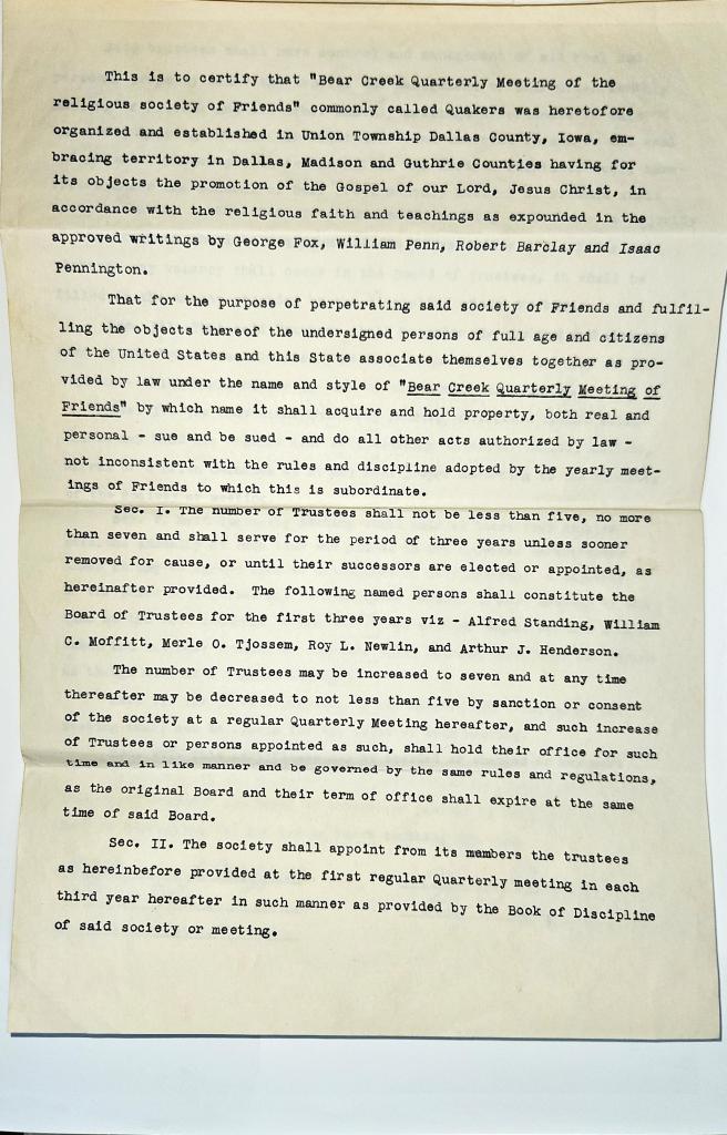 Bear Creek Friends Historical Documents