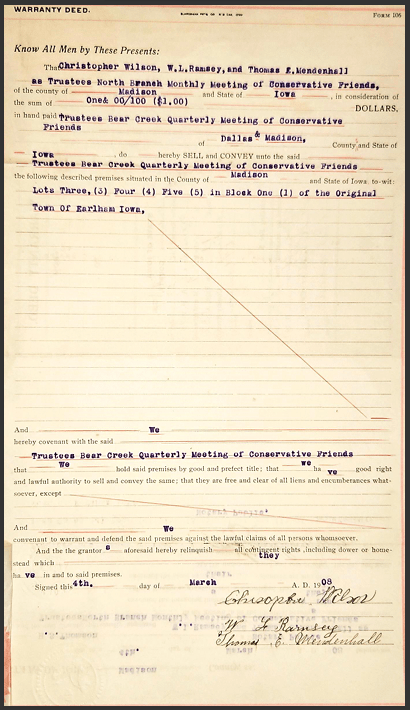 Earlham Meeting Property deed