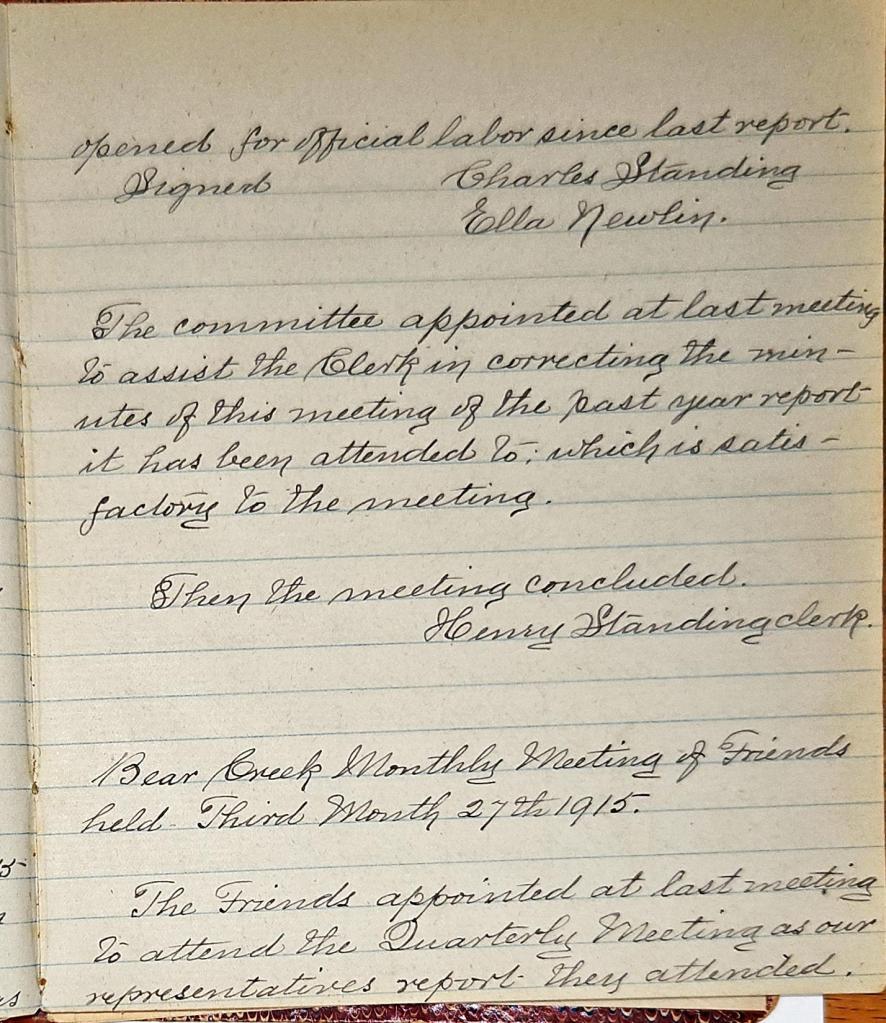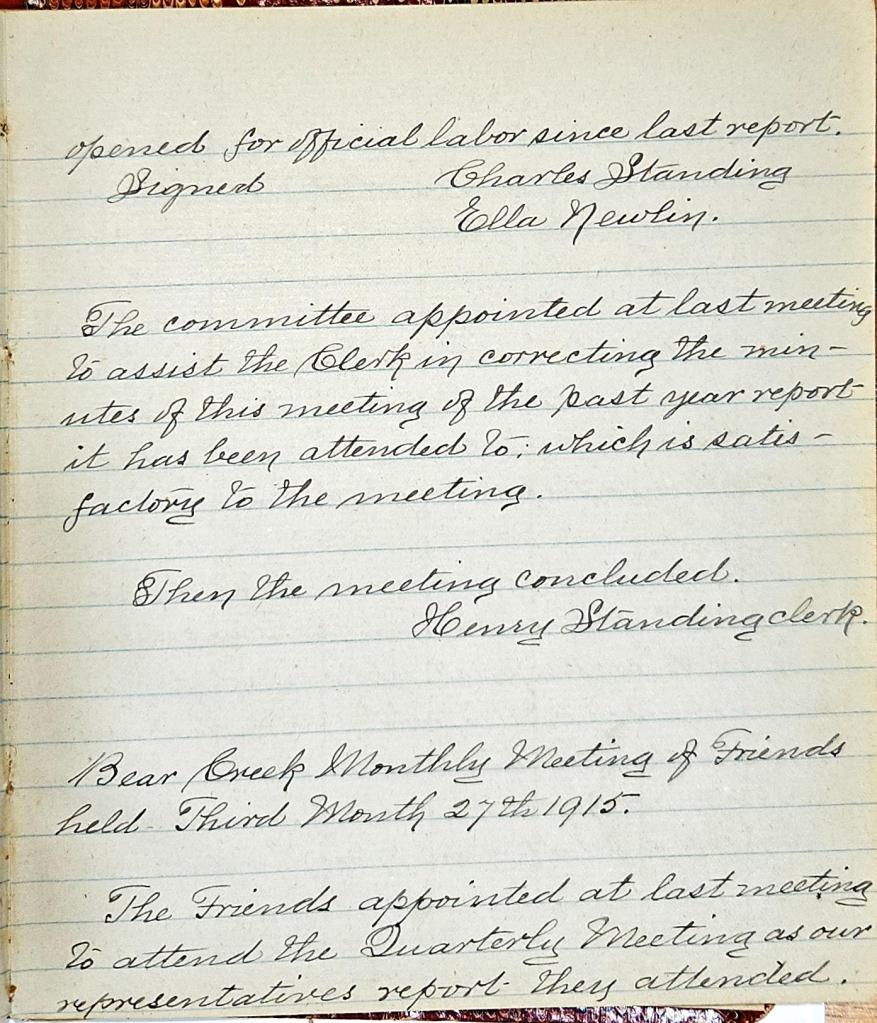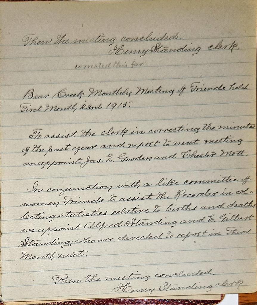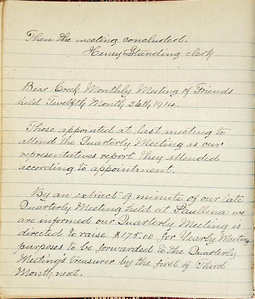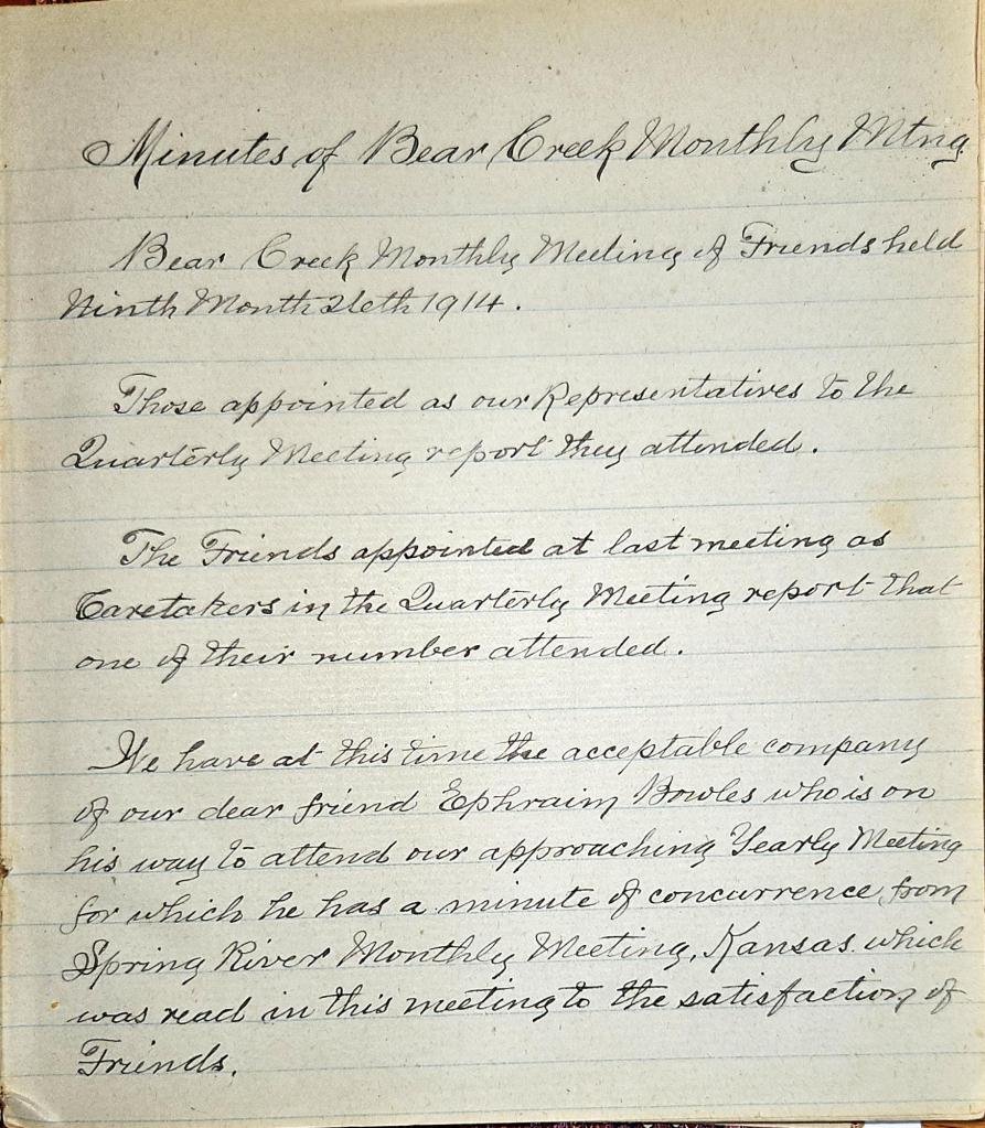 Minutes of Bear Creek Monthly Meeting of Friends 1914