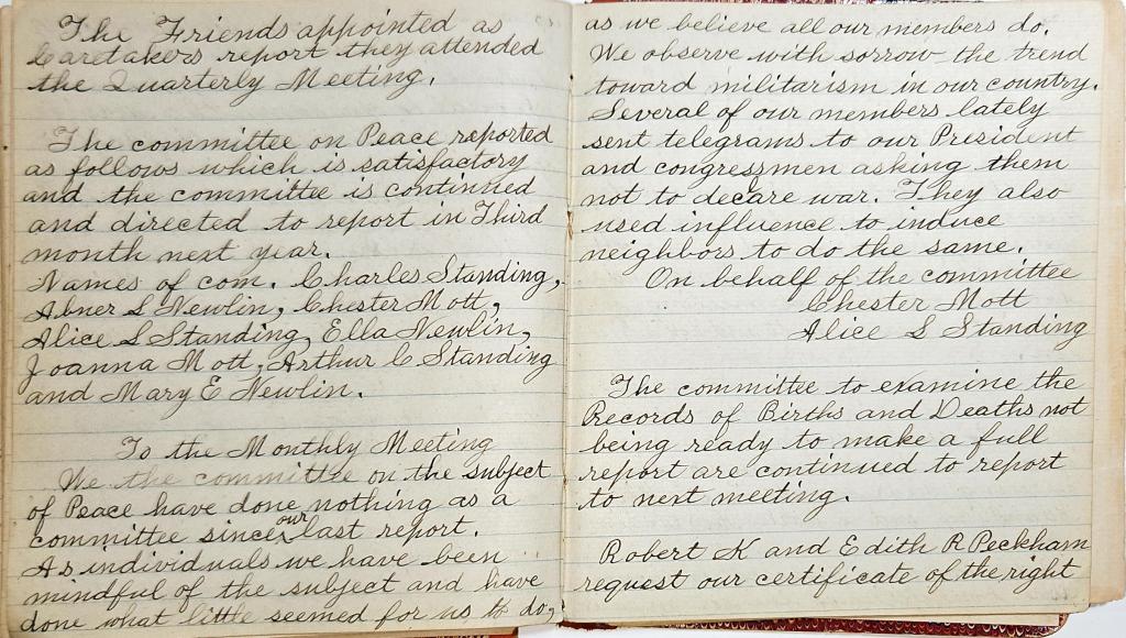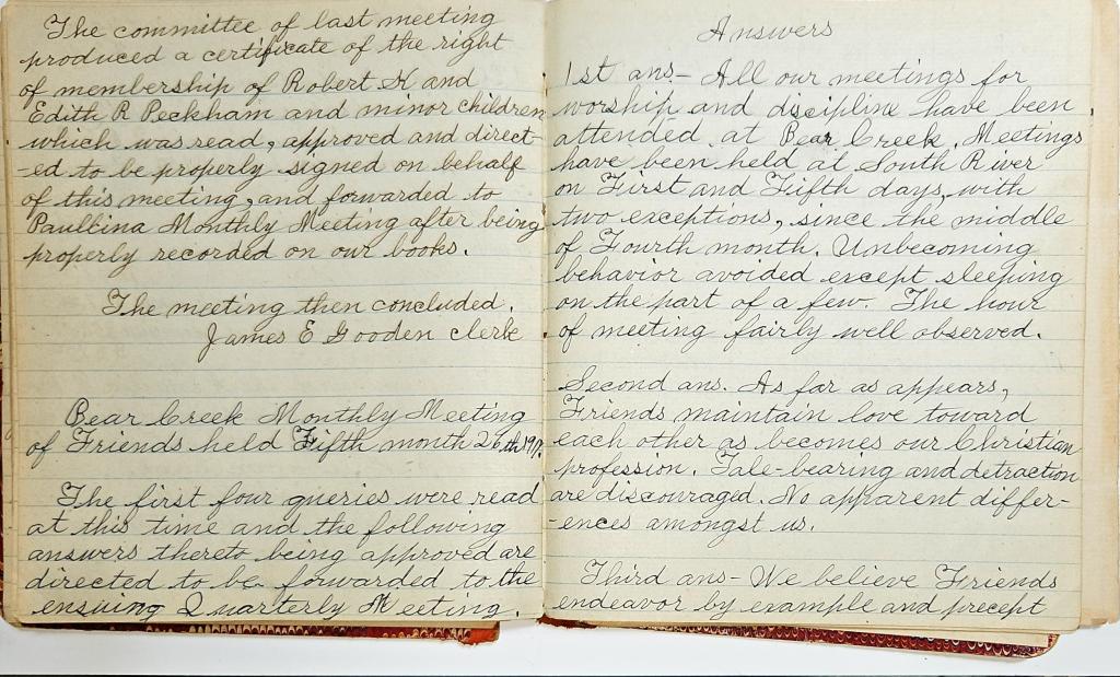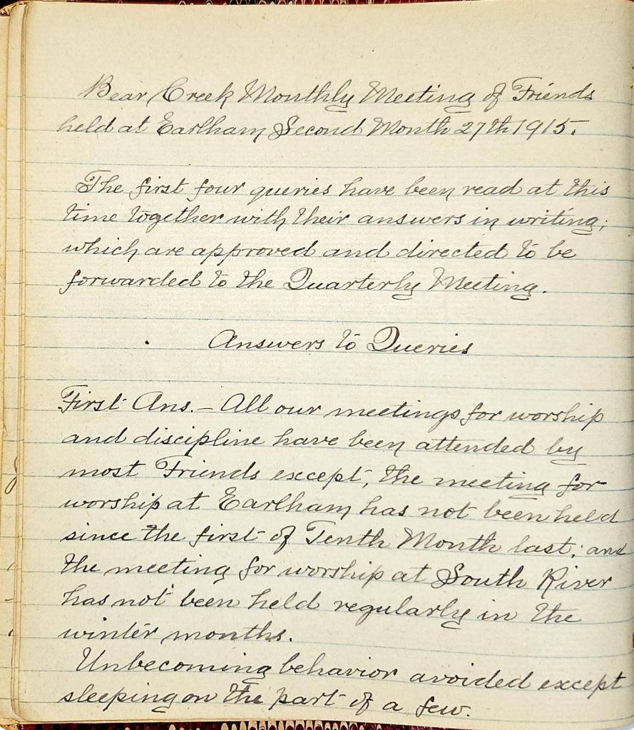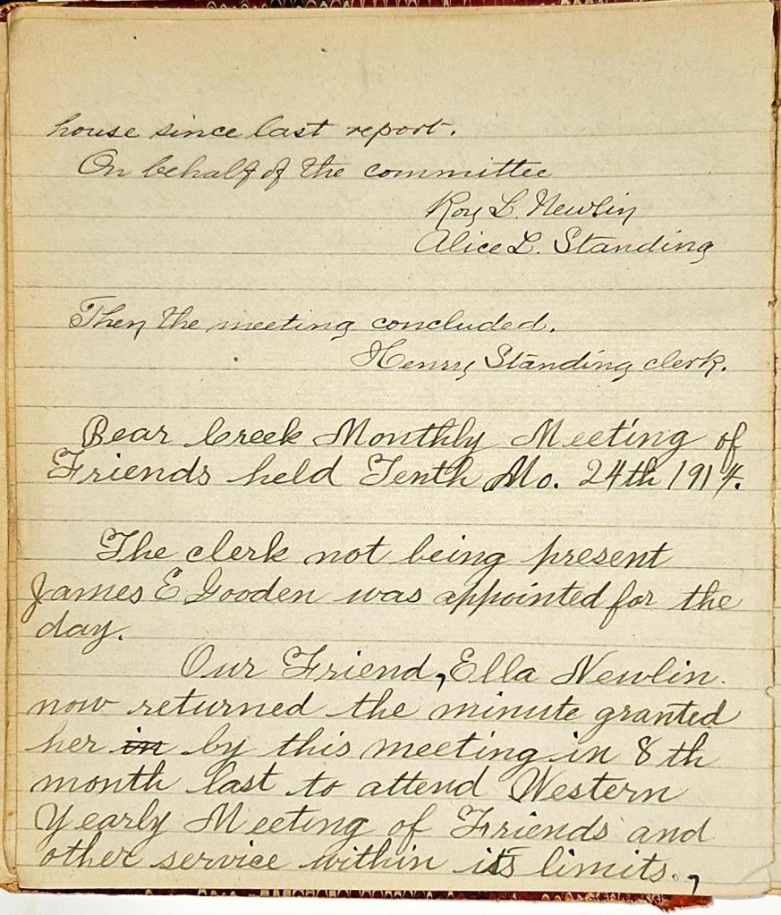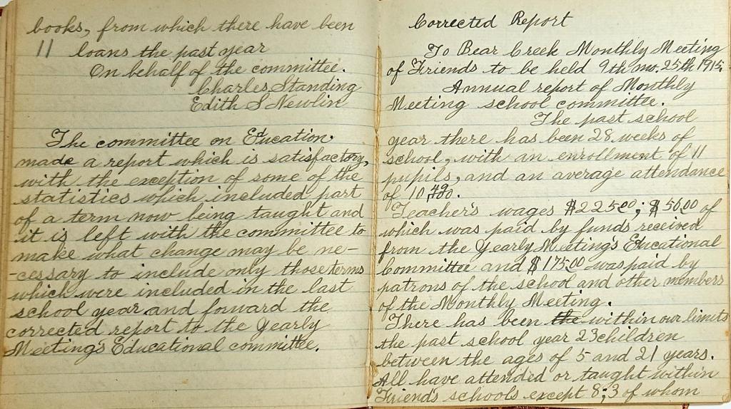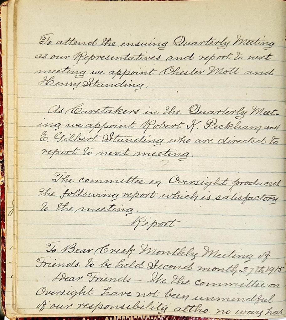 Minutes of Bear Creek Monthly Meeting of Friends 1914