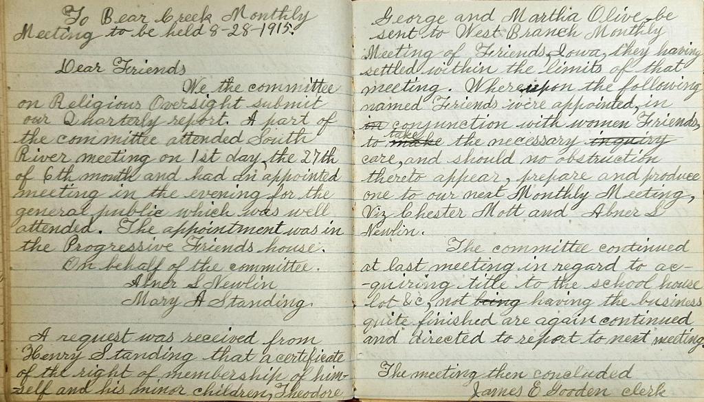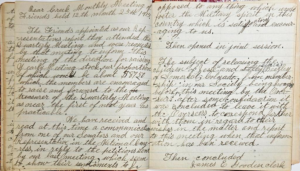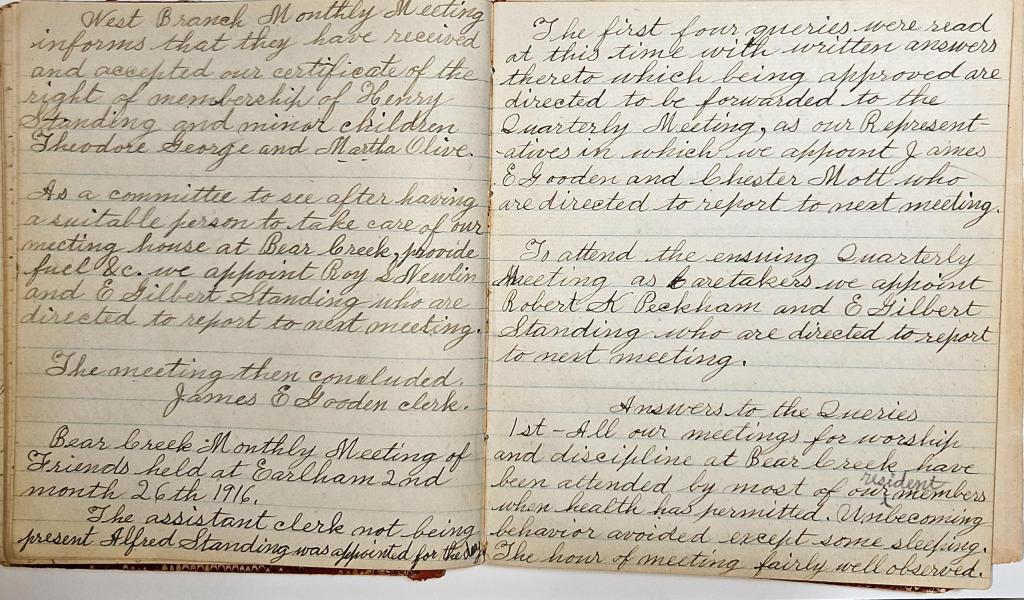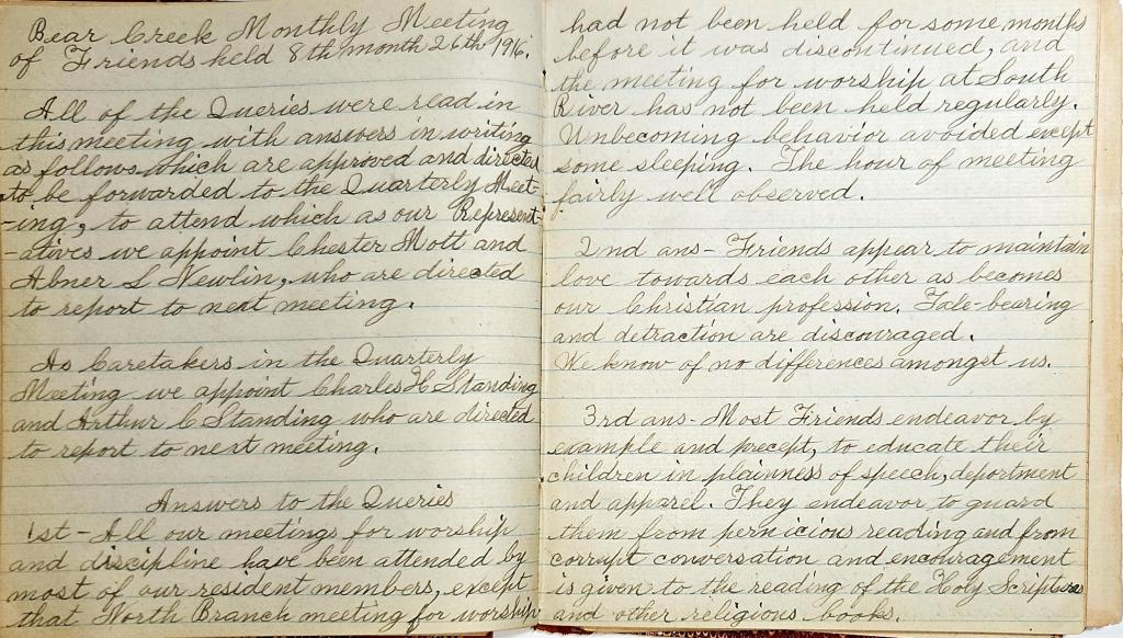 Bear Creek Monthly Meeting of Friends Minutes 11.16.1899 11.25.1916