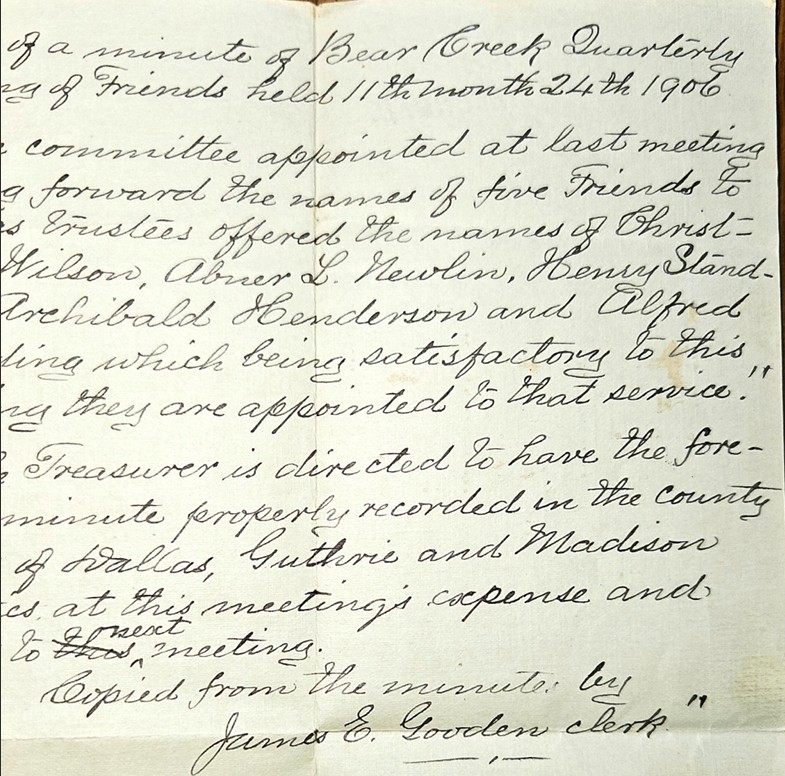Bear Creek Friends Historical Documents