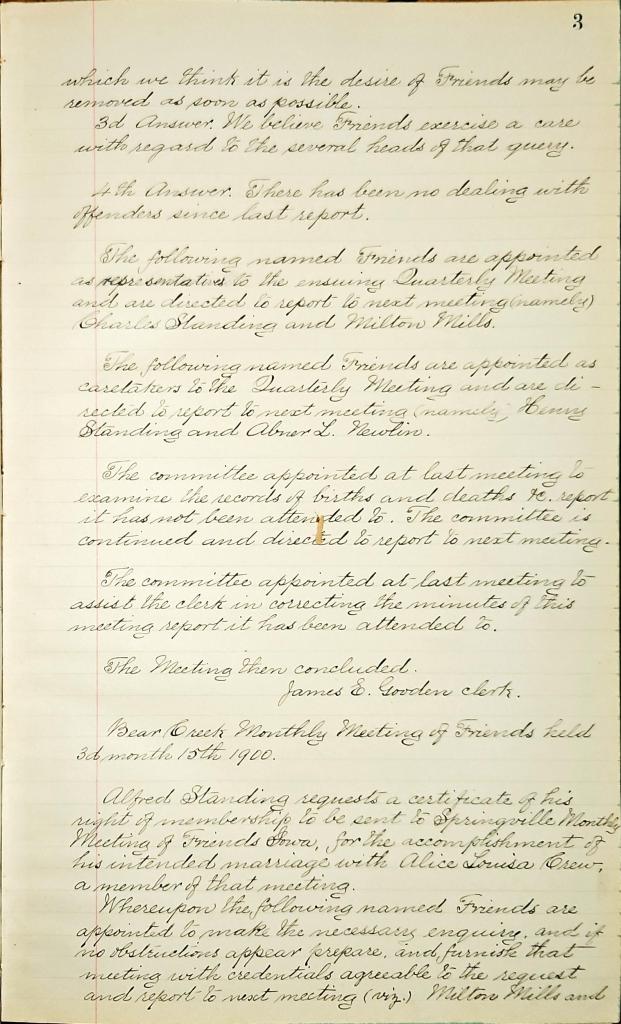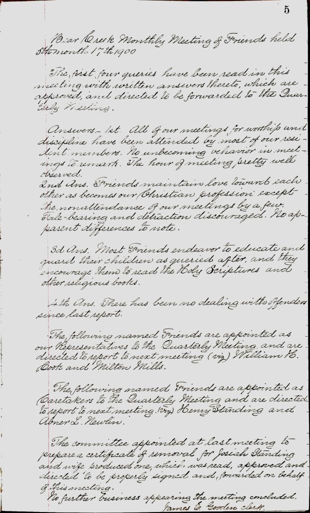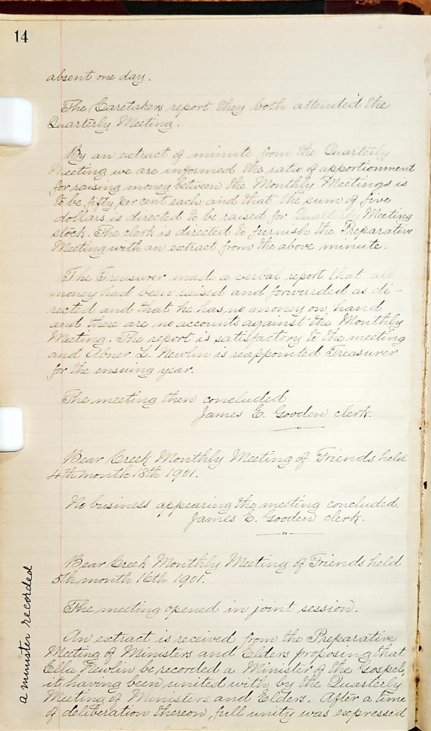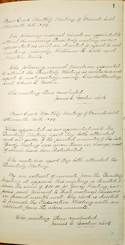 Bear Creek Monthly Meeting of Friends Minutes 11.16.1899 11.25.1916
